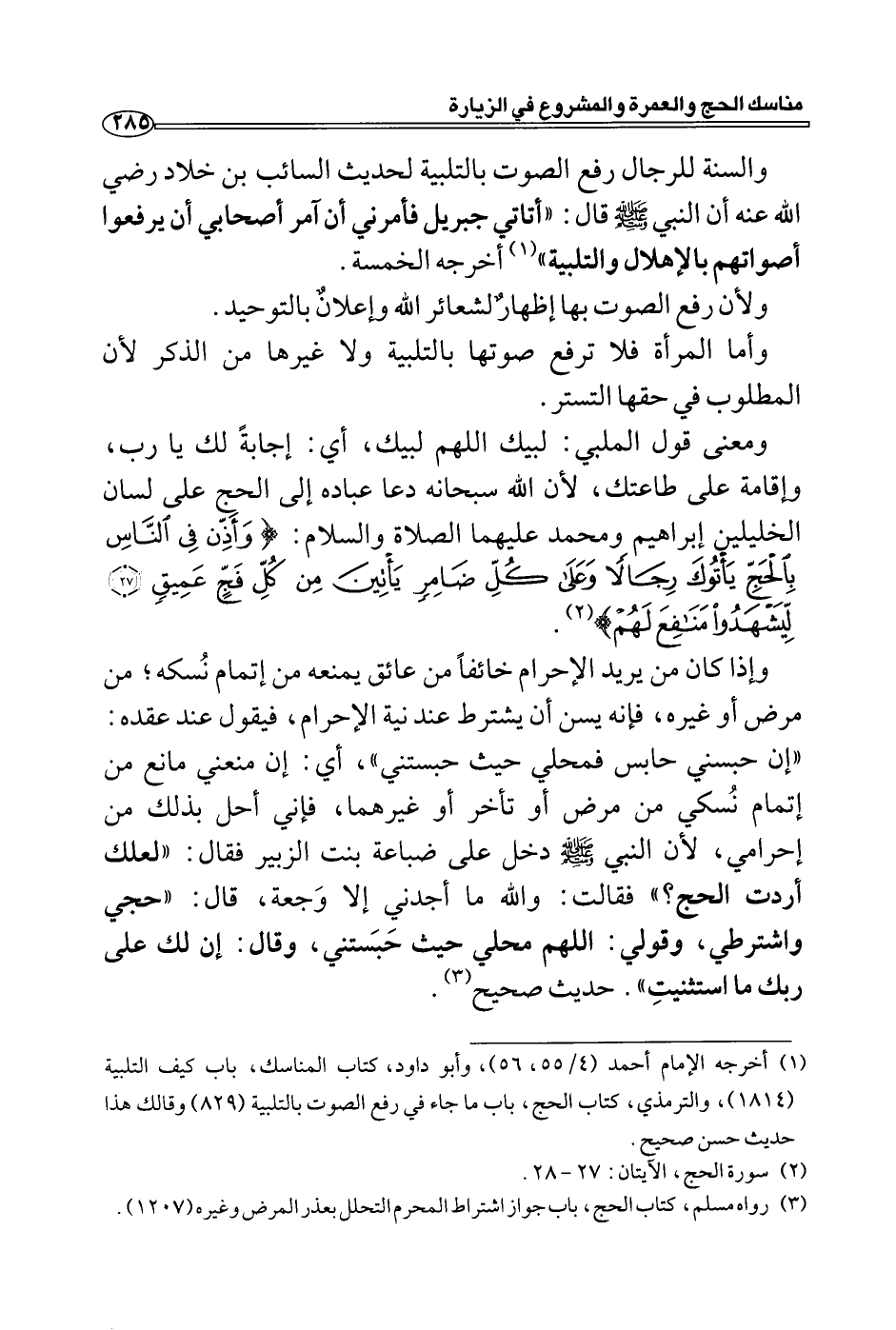 (1) أخرجه الإمام أحمد (4/55، 56) ، وأبو داود، كتاب المناسك، باب كيف التلبية (1814) ، والترمذي، كتاب الحج، باب ما جاء في رفع الصوت بالتلبية (829) وقالك هذا حديث حسن صحيح.
