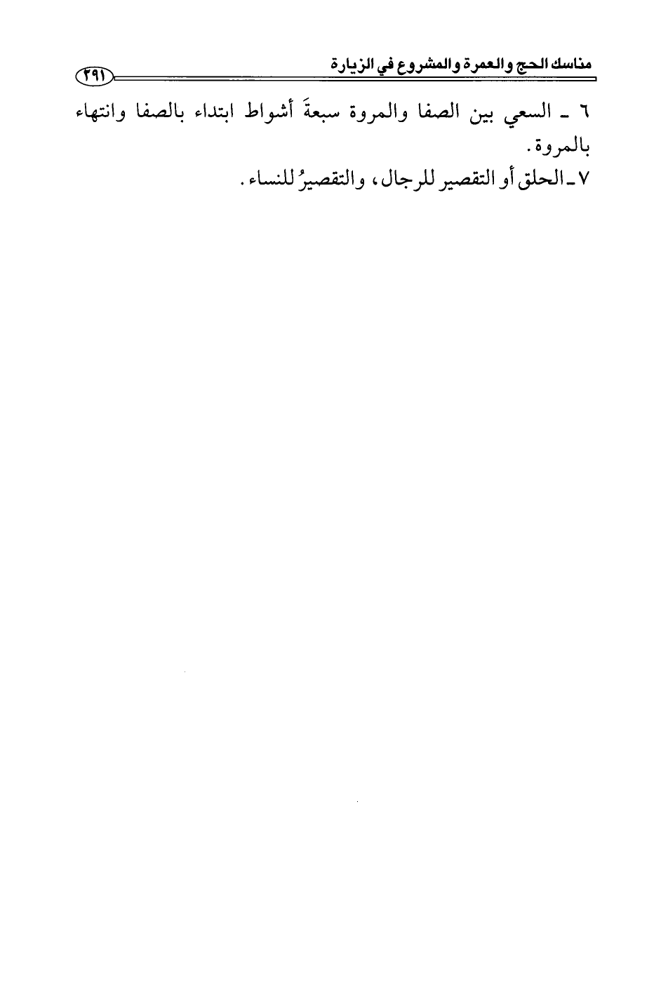 7- الحلق أو التقصير للرجال، والتقصيرُ للنساء.
