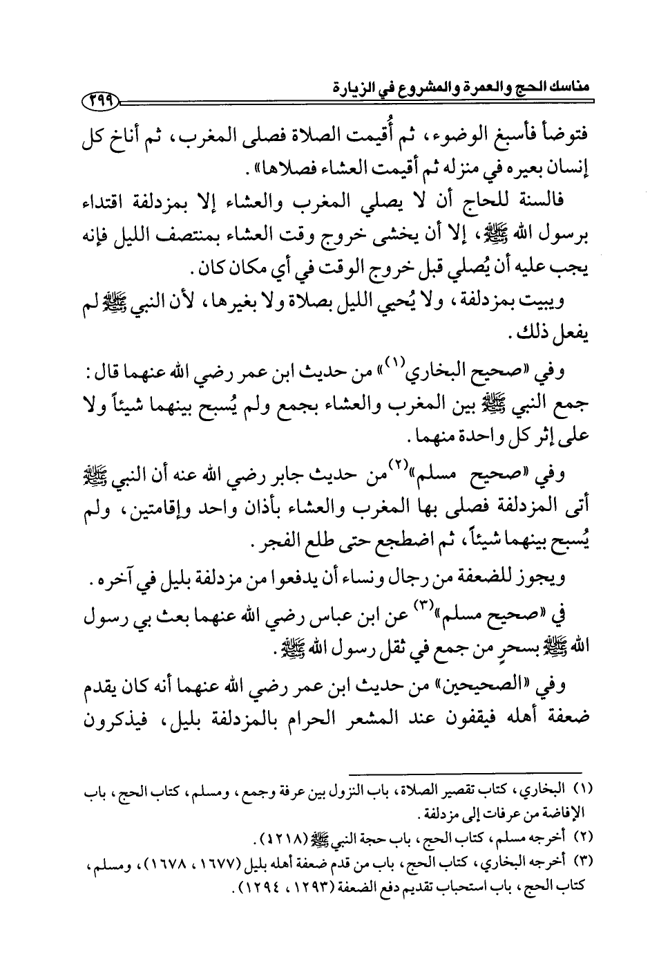 (1) البخاري، كتاب تقصير الصلاة، باب النزول بين عرفة وجمع، ومسلم، كتاب الحج، باب الإفاضة من عرفات إلى مزدلفة.