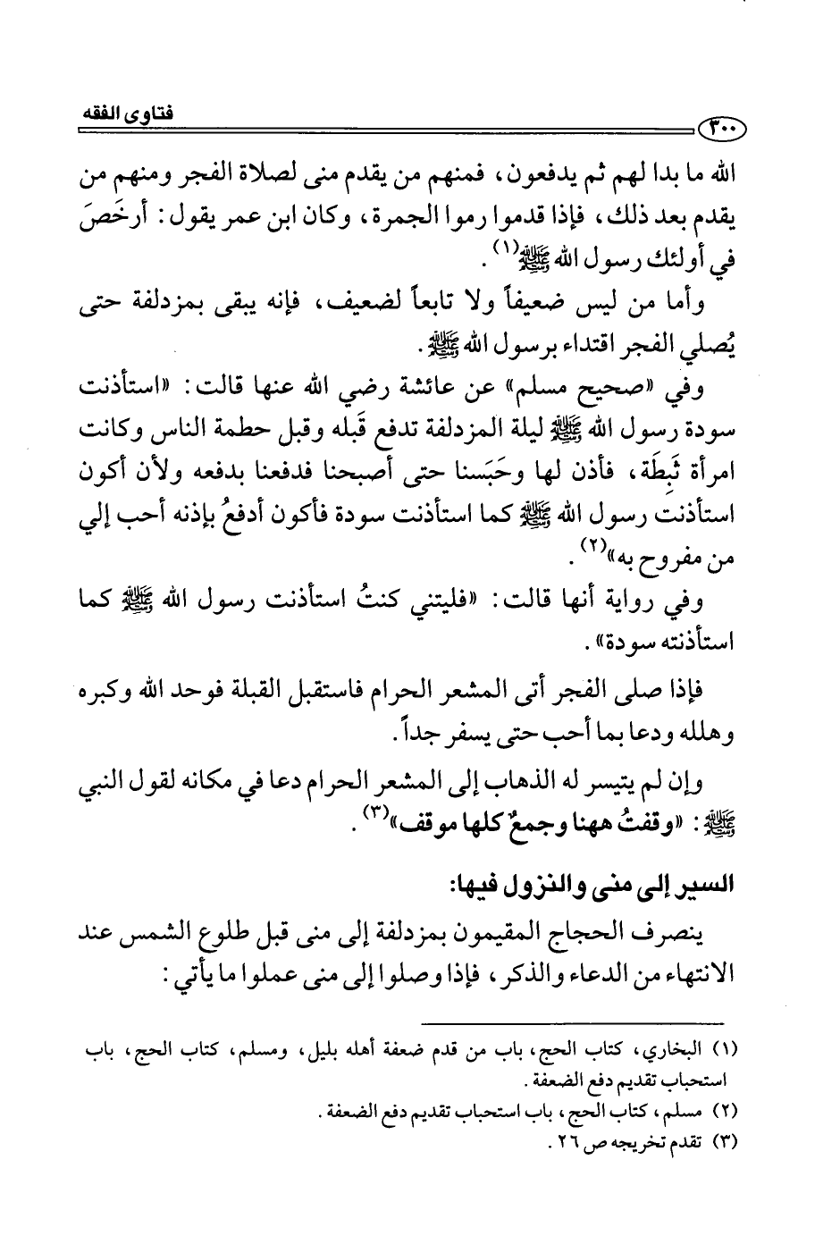 (1) البخاري، كتاب الحج، باب من قدم ضعفة أهله بليل، ومسلم، كتاب الحج، باب استحباب تقديم دفع الضعفة.
