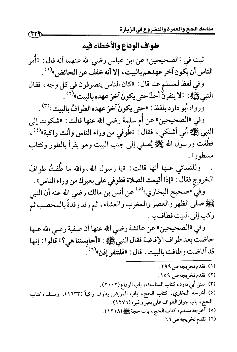 (4) أخرجه البخاري، كتاب الحج، باب المريض يطوف راكباً (1633) ، ومسلم، كتاب الحج، باب جواز الطواف على بعير وغيره (1276) .