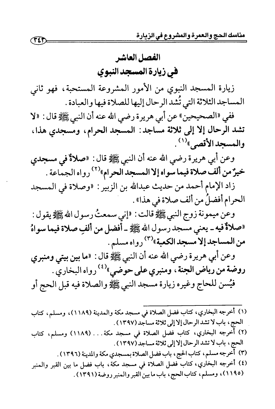 وعن أبي هريرة رضي الله عنه أن النبي - صلى الله عليه وسلم - قال: "صلاةٌ في مسجدي خيرٌ من ألف صلاة فيما سواه إلا المسجد الحرام " (2) رواه الجماعة.