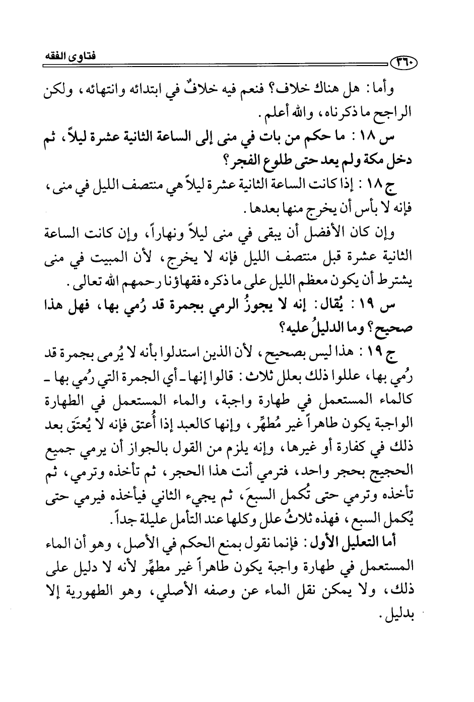 س 19: يقال: إنه لا يجوزُ الرمي بجمرة قد رُمي بها، فهل هذا صحيح؟ وما الدليلُ عليه؟