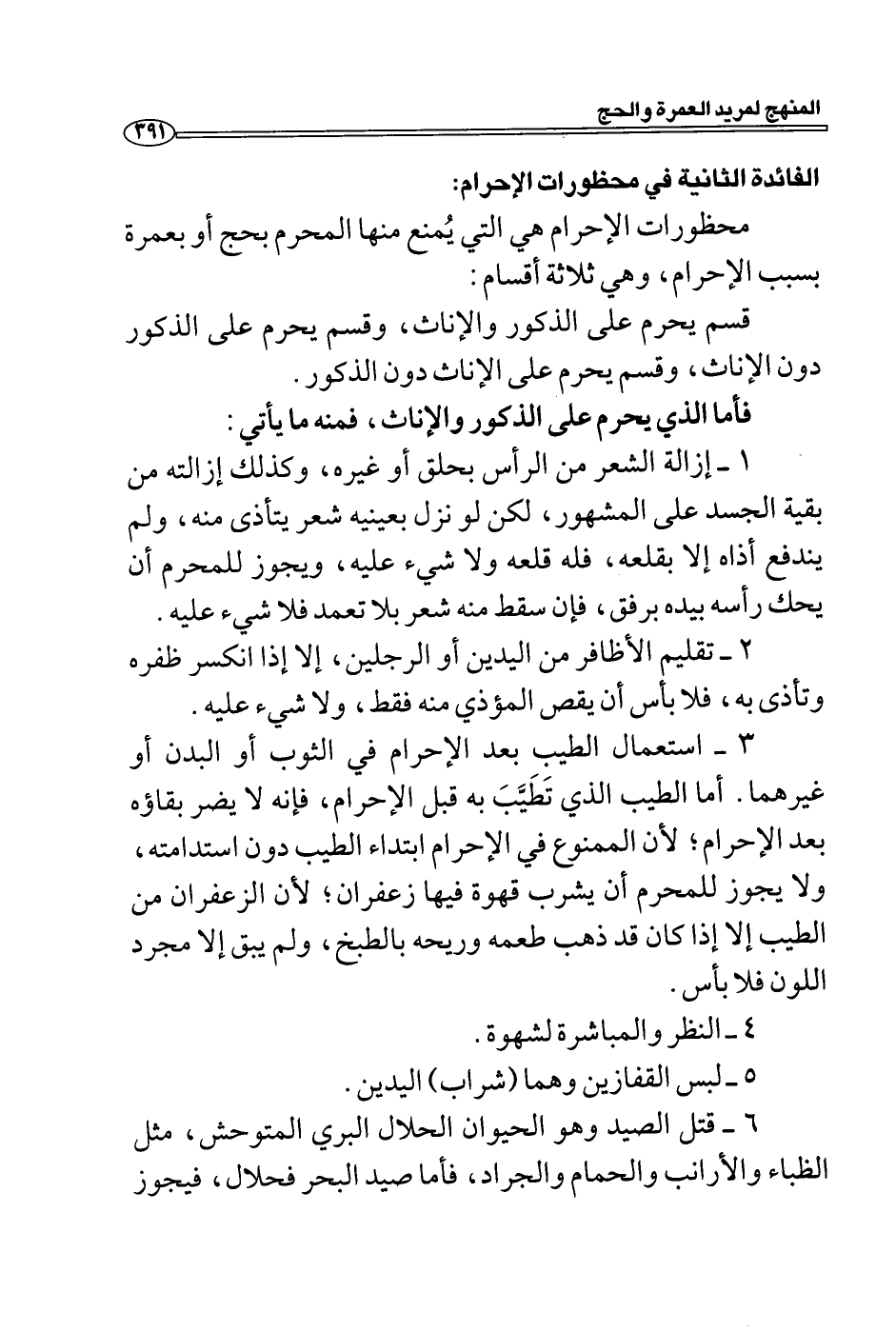 الفائدة الثانية في محظورات الإحرام: