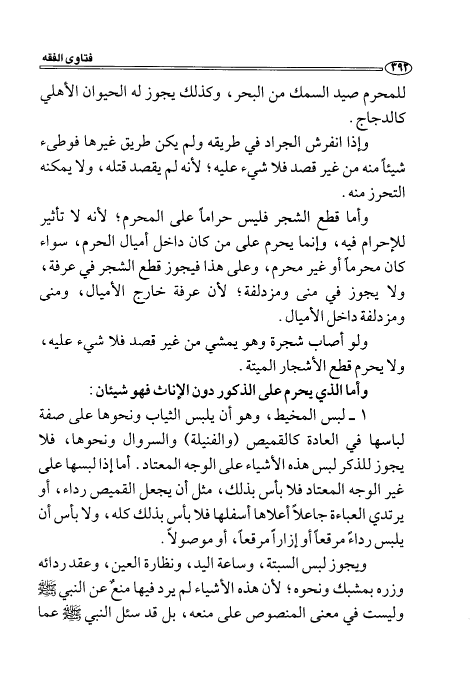 وأما قطع الشجر فليس حراماً على المحرم؛ لأنه لا تأثير للإحرام فيه، وإنما يحرم على من كان داخل أميال الحرم، سواء كان محرماً أو غير محرم، وعلى هذا فيجوز قطع الشجر في عرفة، ولا يجوز في منى ومزدلفة؛ لأن عرفة خارج الأميال، ومنى ومزدلفة داخل الأميال.