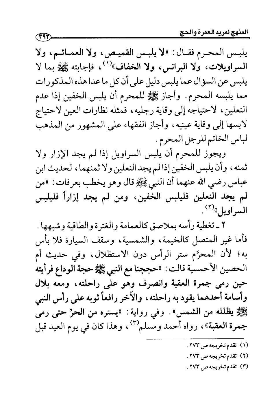 2- تغطية رأسه بملاصق كالعمامة والغترة والطاقية وشبهها.