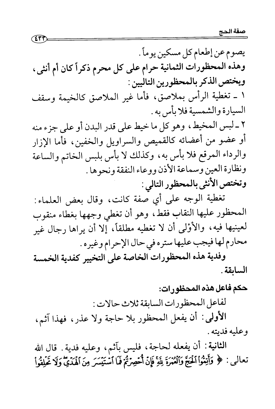 وهذه المحظورات الثمانية حرام على كل محرم ذكراً كان أم أنثى، ويختص الذكر بالمحظورين التاليين: