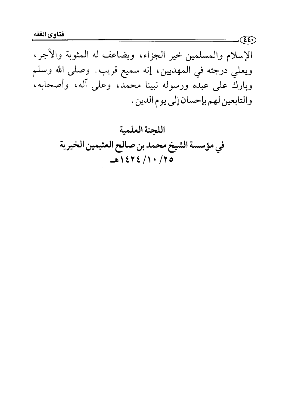 الإسلام والمسلمين خير الجزاء، ويضاعف له المثوبة والأجر، ويعلي درجته في المهديين، إنه سميع قريب. وصلى الله وسلم وبارك على عبده ورسوله نبينا محمد، وعلى آله، وأصحابه،