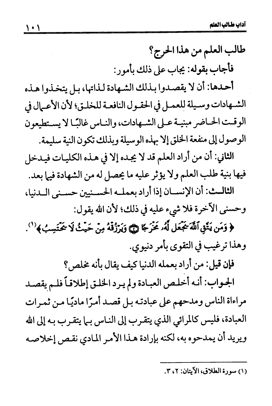 طالب العلم من هذا الحرج؟