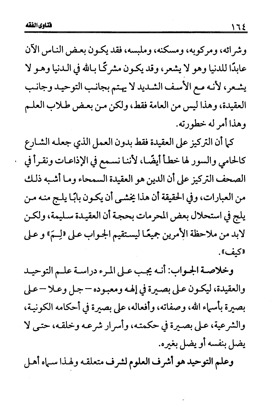 العقيدة، وهذا ليس من العامة فقط، ولكن من بعض طلاب العلم وهذا أمر له خطورته.