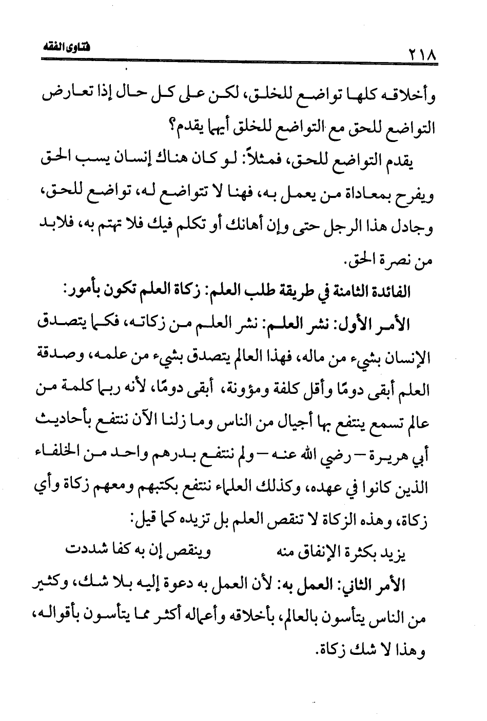 الفائدة الثامنة في طريقة طلب العلم: زكاة العلم تكون بأمور: