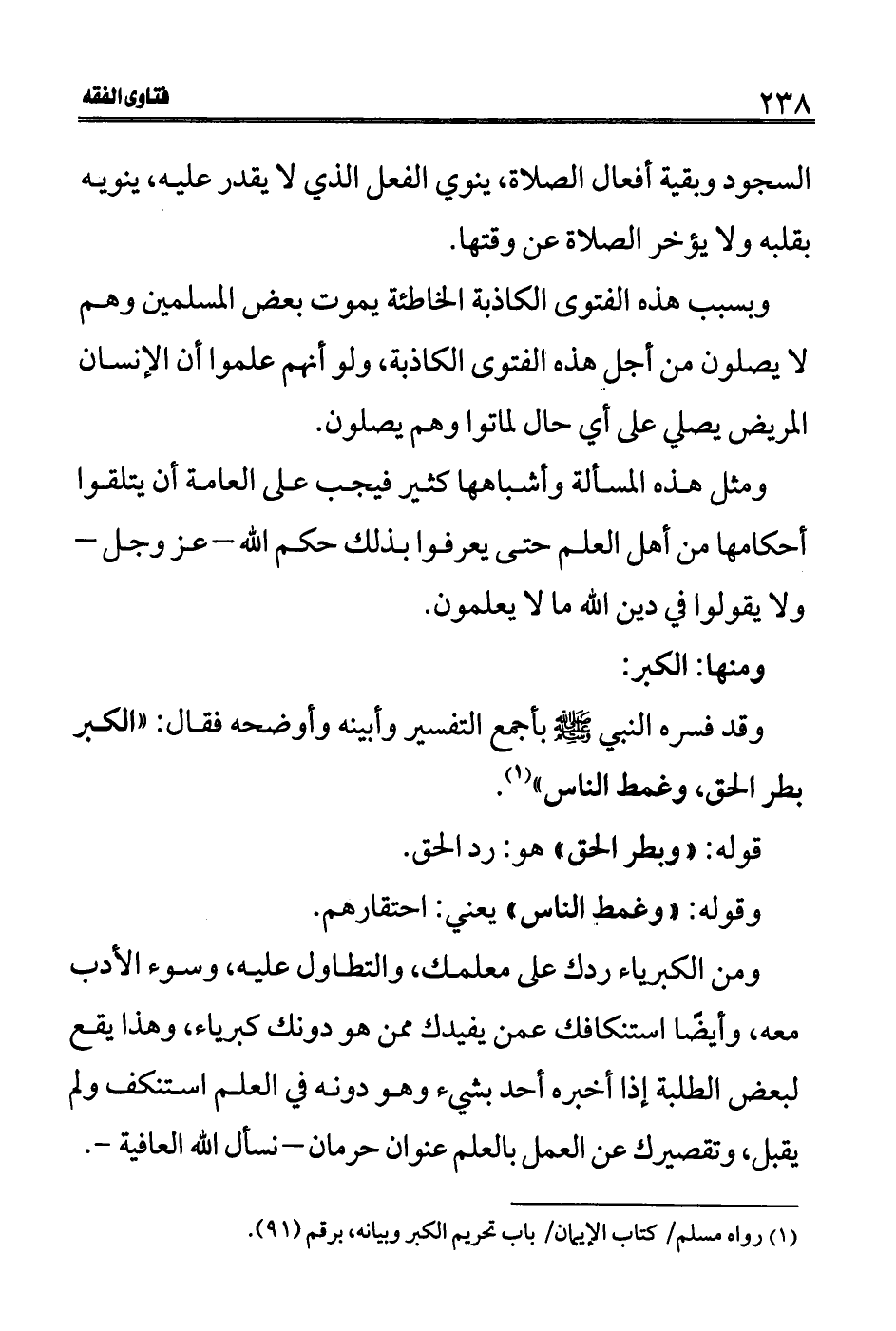 (1) رواه مسلم/كتاب الإيمان/باب تحريم الكبر وبيانه، برقم (91) .
