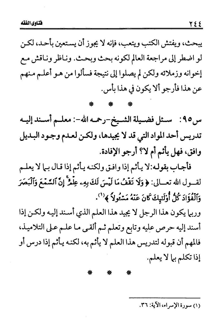 (1) سورة الإسراء، الآية: 36.
