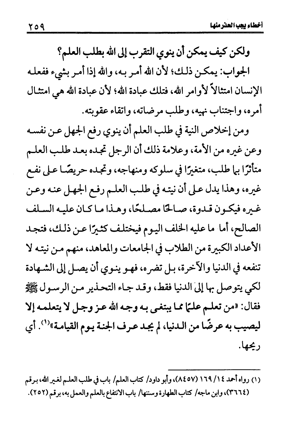 (1) رواه أحمد 14/169 (8457) ، وأبو داود/كتاب العلم/باب في طلب العلم لغير الله، برقم