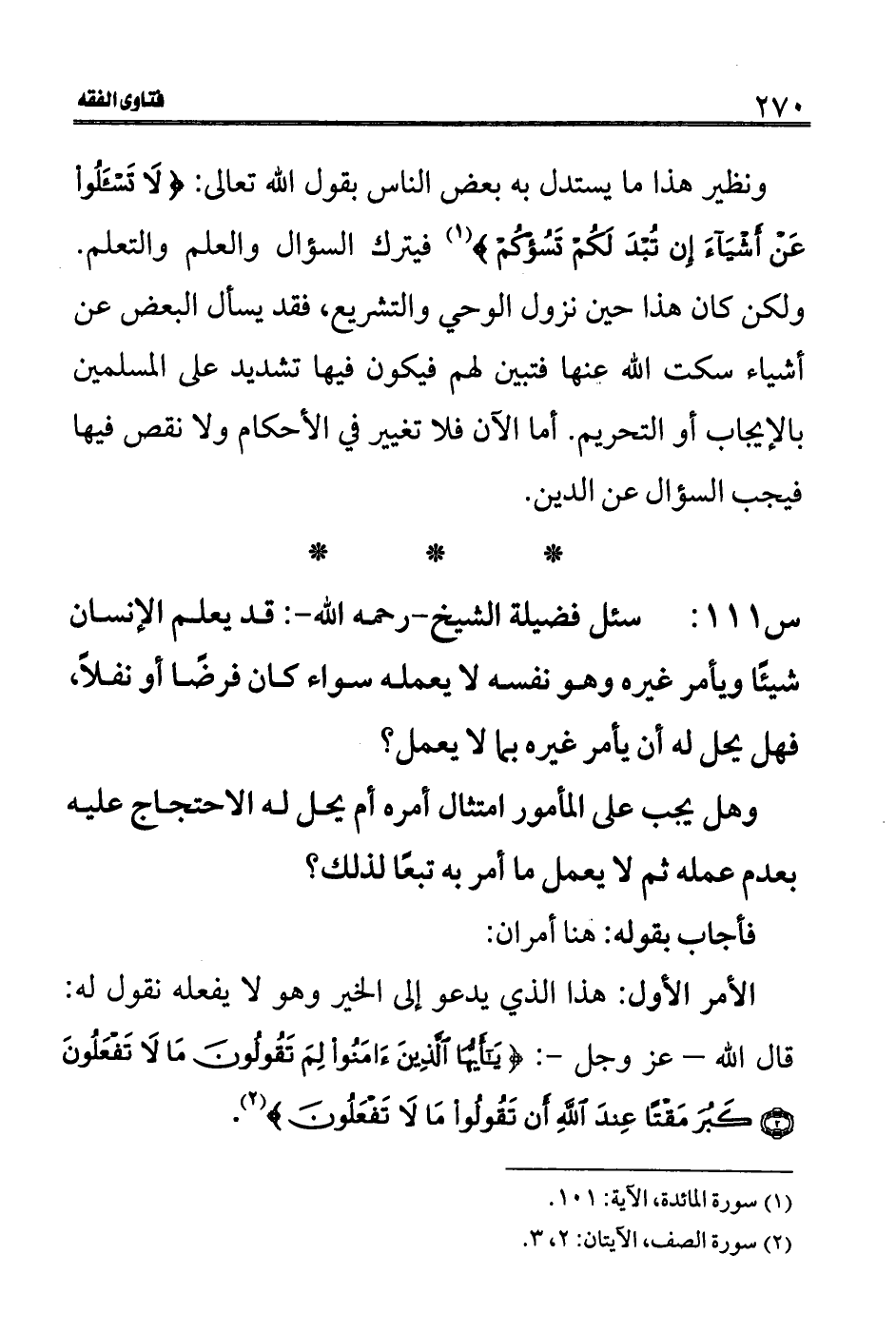 (1) سورة المائدة، الآية: 101.