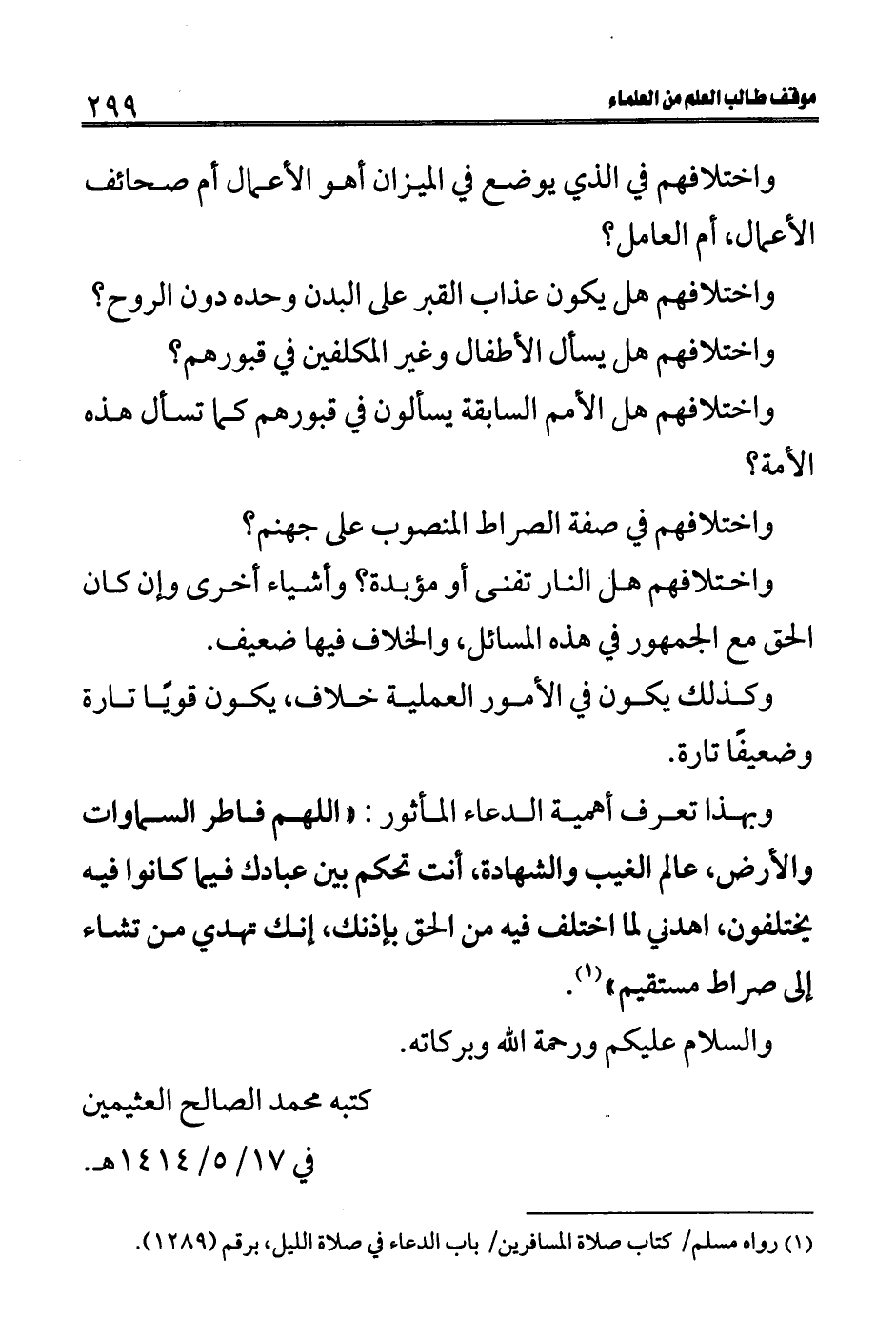 وبهذا تعرف أهمية الدعاء المأثور: " اللهم فاطر السماوات والأرض، عالم الغيب والشهادة، أنت تحكم بين عبادك فيما كانوا فيه يختلفون، اهدني لما اختلف فيه من الحق بإذنك، إنك تهدي من تشاء
