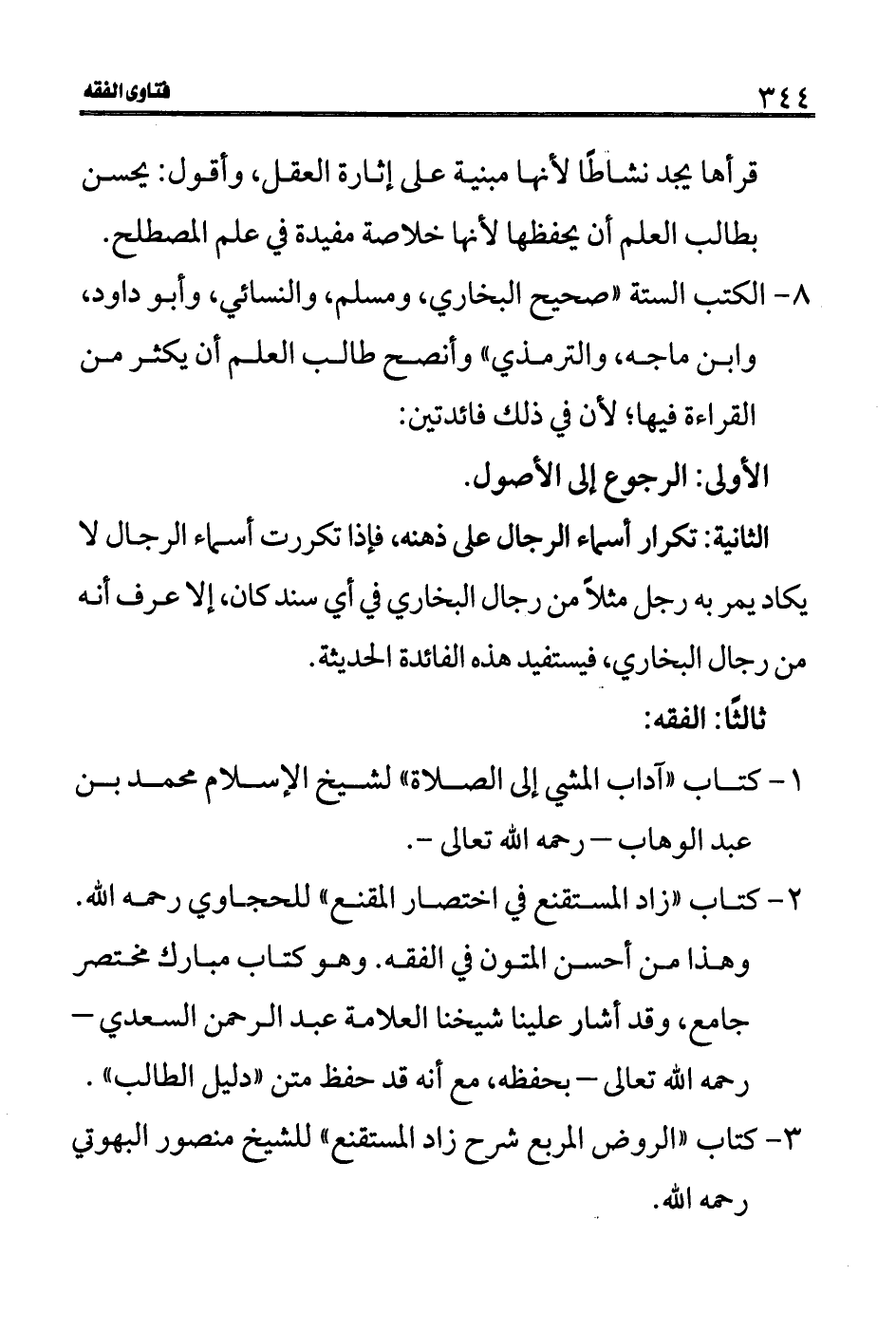 1- كتاب "آداب المشي إلى الصلاة" لشيخ الإسلام محمد بن عبد الوهاب- رحمه الله تعالى-.