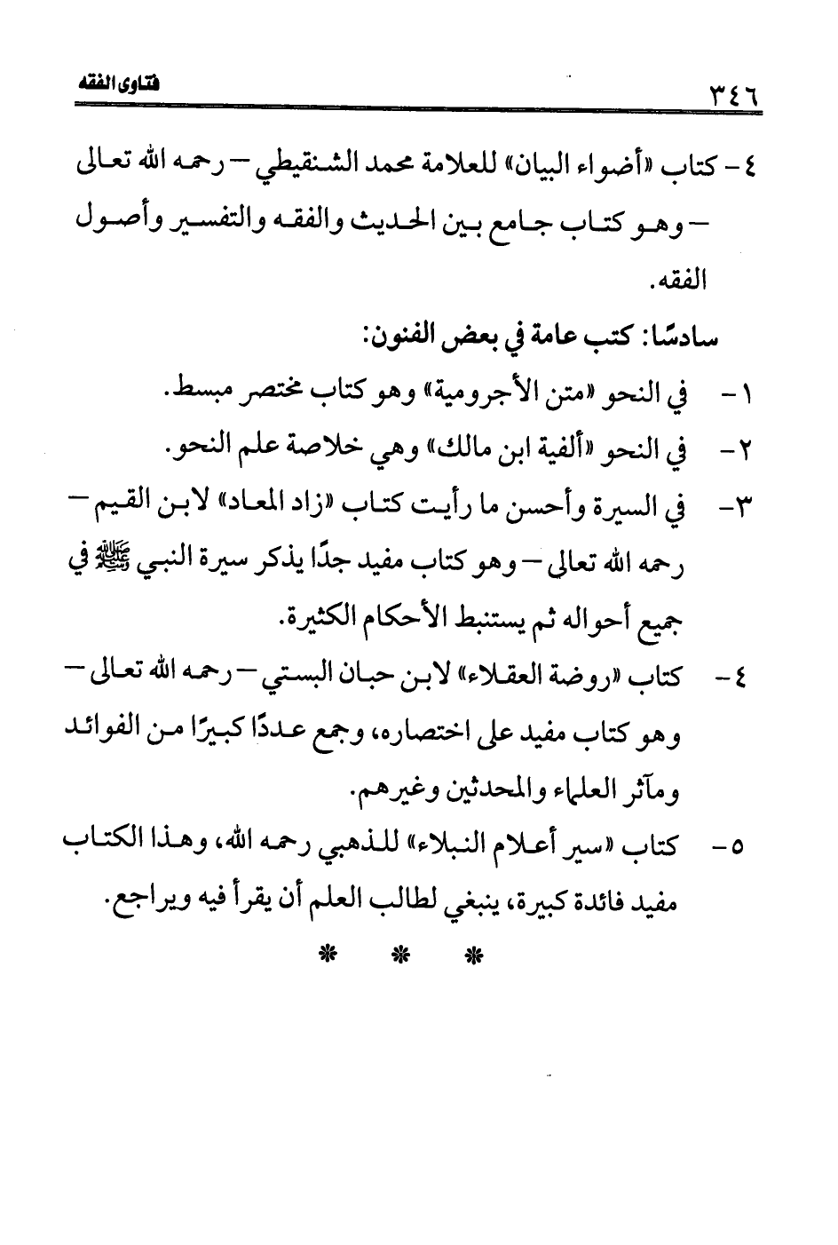 4- كتاب "روضة العقلاء" لابن حبان البستي- رحمه الله تعالى- وهو كتاب مفيد على اختصاره، وجمع عددًا كبيرًا من الفوائد ومآثر العلماء والمحدثين وغيرهم.