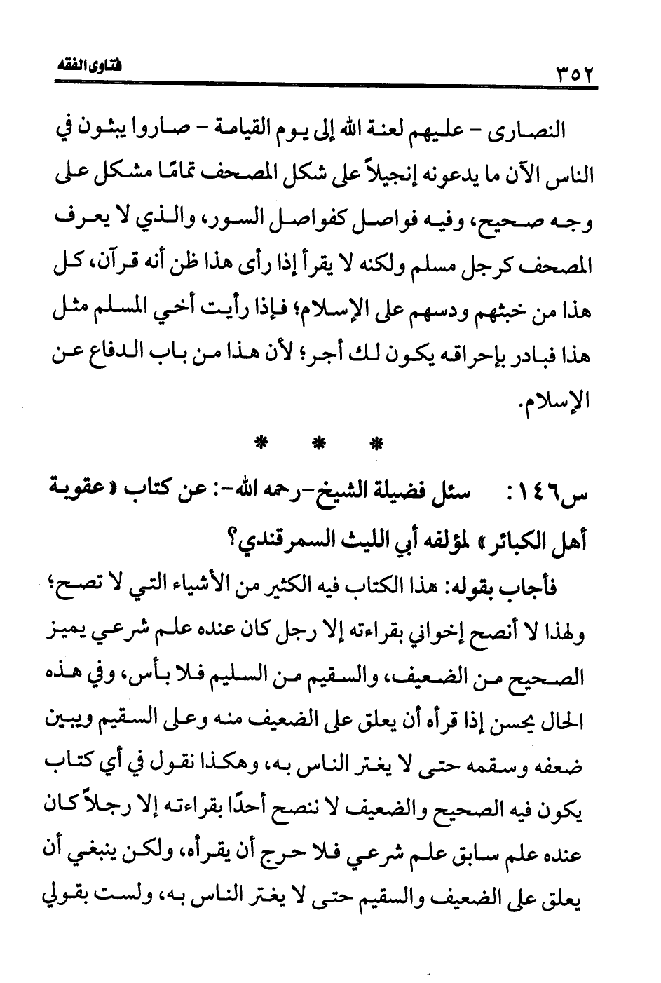 س 146: سئل فضيلة الشيخ- رحمه الله-: عن كتاب "عقوبة أهل الكبائر" لمؤلفه أبي الليث السمرقندي؟