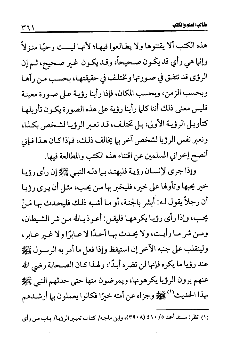هذه الكتب ألا يقتنوها ولا يطالعوا فيها؛ لأنها ليست وحيًا منزلاً وإنما هي رأي قد يكون صحيحاً، وقد يكون غير صحيح، ثم إن الرؤى قد تتفق في صورتها وتختلف في حقيقتها، بحسب من رآها