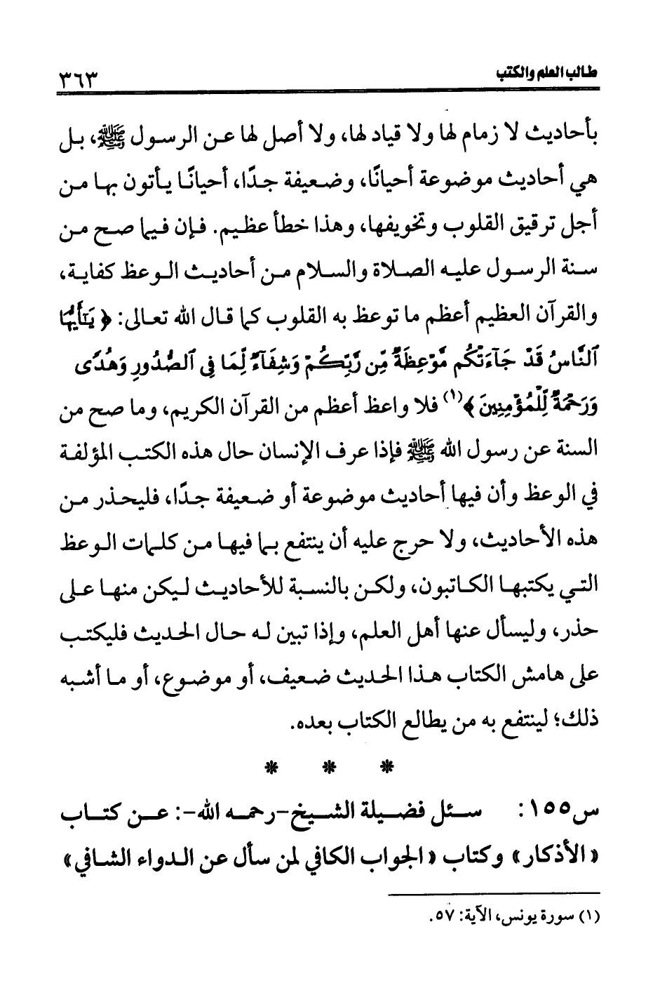 س 155: سئل فضيلة الشيخ- رحمه الله-: عن كتاب " الأذكار" وكتاب "الجواب الكافي لمن سال عن الدواء الشافي"