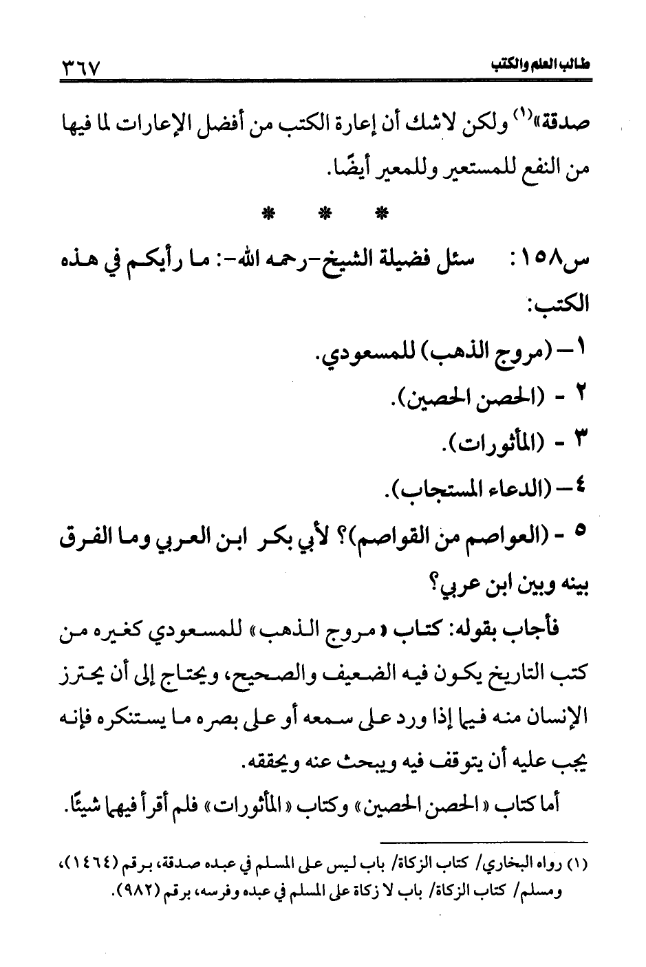 س 158: سئل فضيلة الشيخ- رحمه الله-: ما رأيكم في هذه الكتب:
