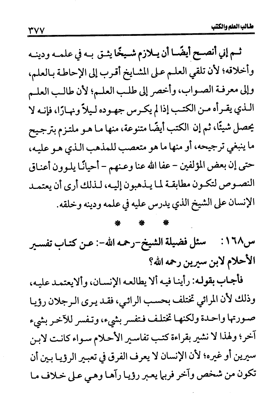 س 168: سئل فضيلة الشيخ- رحمه الله-: عن كتاب تفسير الأحلام لابن سيرين رحمه الله؟