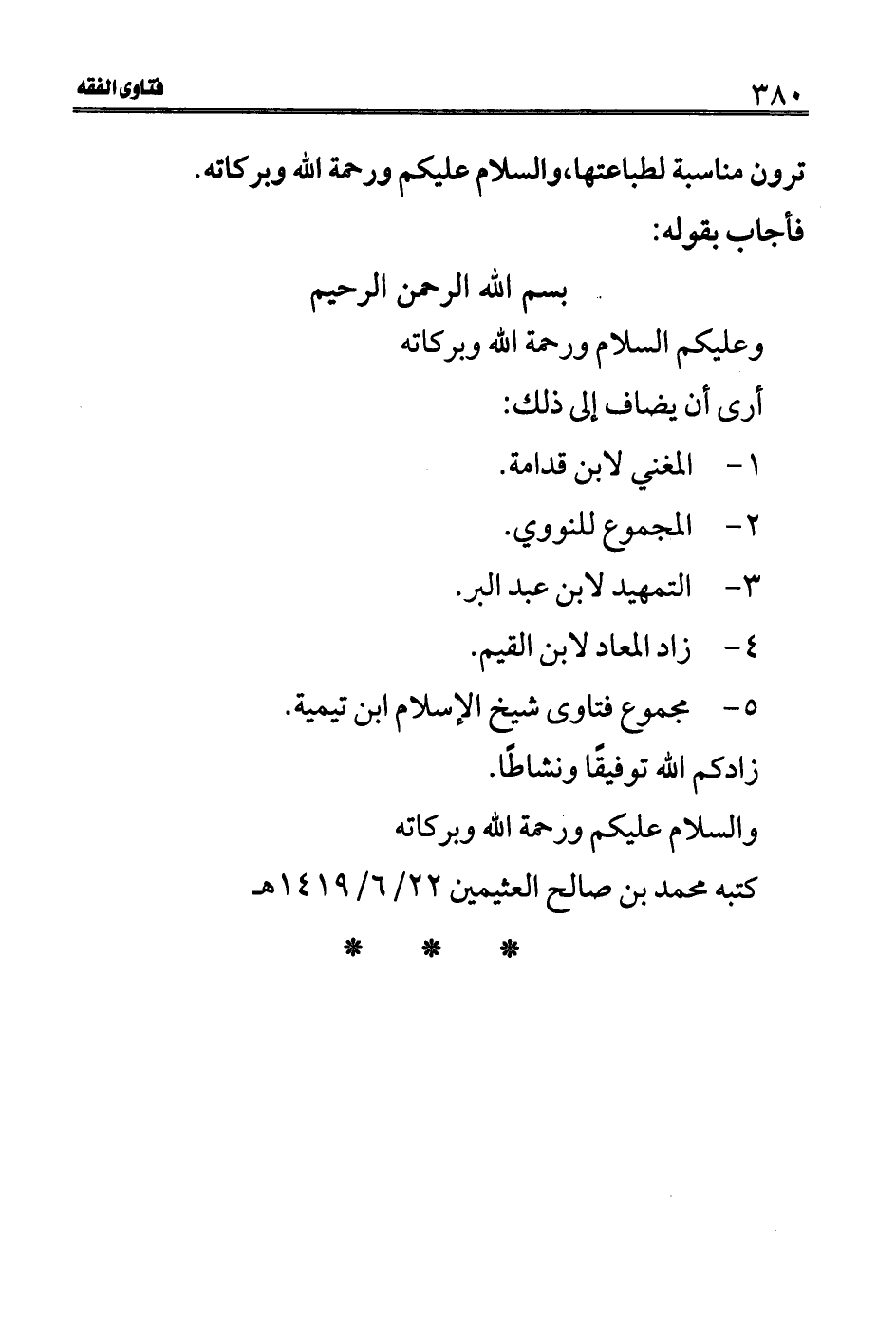 كتبه محمد بن صالح العثيمين 22/6/1419 هـ