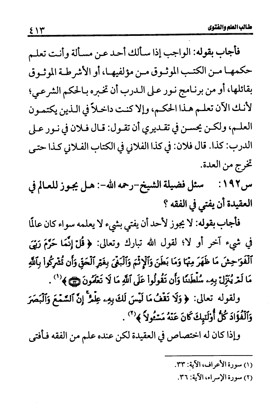 س 192: سئل فضيلة الشيخ- رحمه الله-: هل يجوز للعالم في العقيدة أن يفتي في الفقه؟