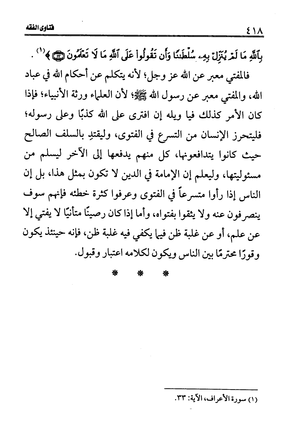 بِاللَّهِ مَا لَمْ يُنَزِّلْ بِهِ سُلْطَاناً وَأَنْ تَقُولُوا عَلَى اللَّهِ مَا لا تَعْلَمُونَ (33)) (1) .