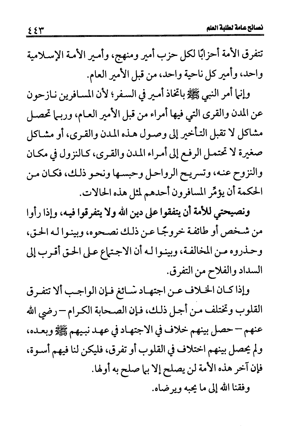 السداد والفلاح من التفرق.