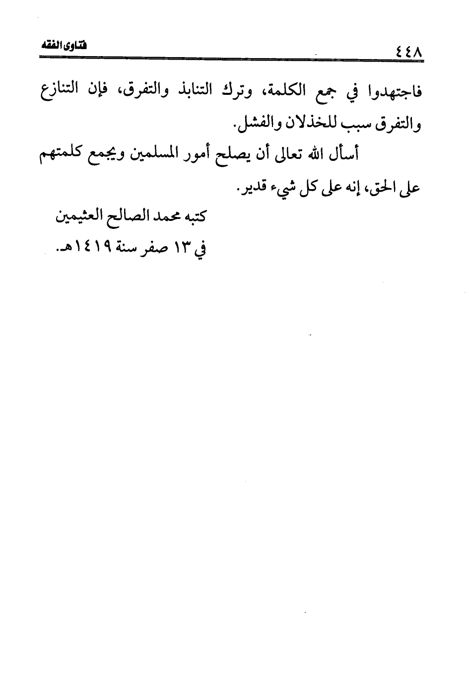 أسال الله تعالى أن يصلح أمور المسلمين ويجمع كلمتهم كل الحق، إنه على كل شيء قدير.