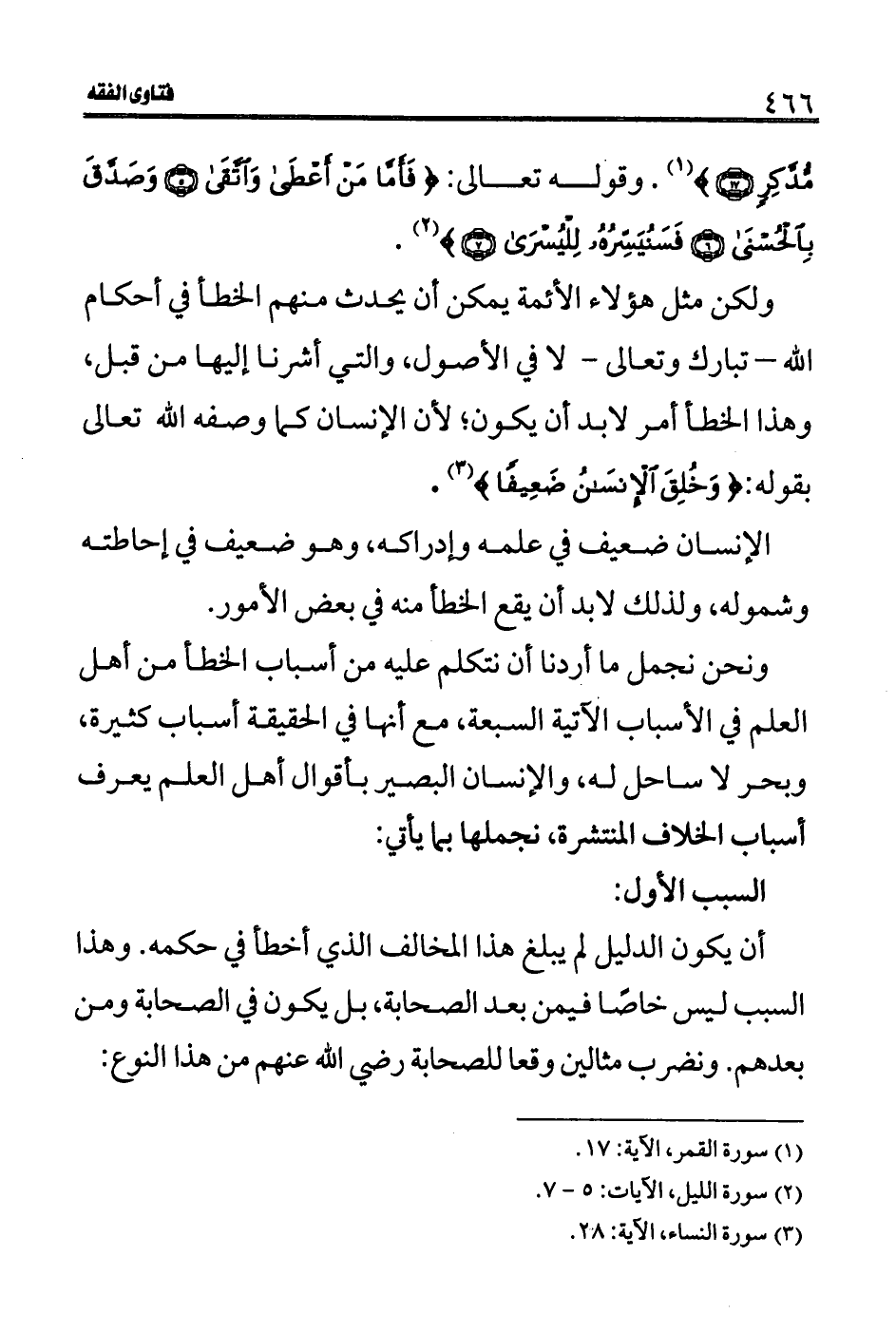 ولكن مثل هؤلاء الأئمة يمكن أن يحدث منهم الخطأ في أحكام الله- تبارك وتعالى- لا في الأصول، والتي أشرنا إليها من قبل، وهذا الخطأ أمر لابد أن يكون؛ لأن الإنسان كما وصفه الله تعالى