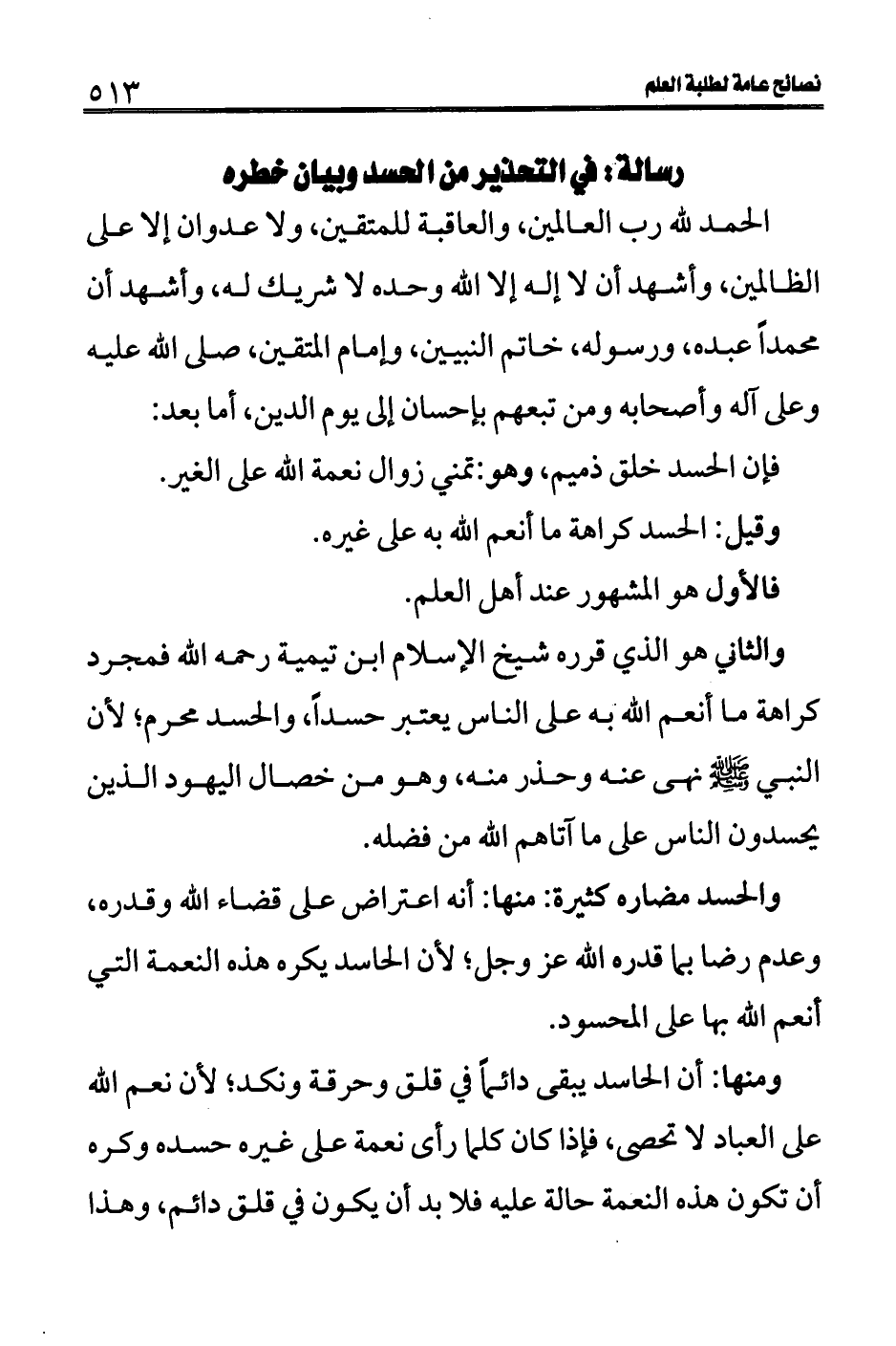 رسالة: في التحذير من الحسد وبيان خطره