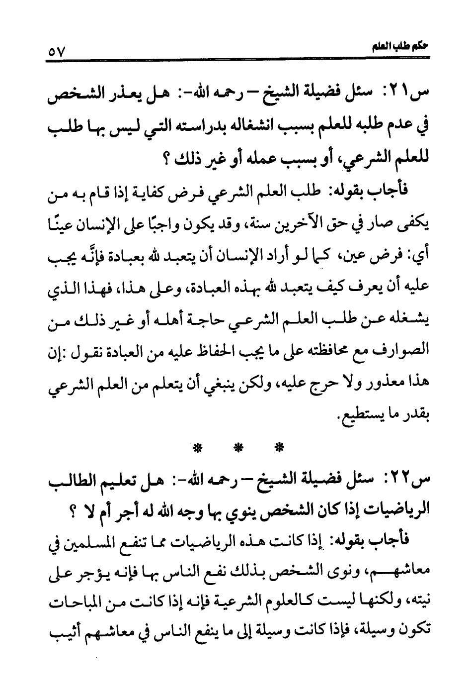 س 22: سئل فضيلة الشيخ- رحمه الله-: هل تعليم الطالب الرياضيات إذا كان الشخص ينوي بها وجه الله له أجر أم لا؟