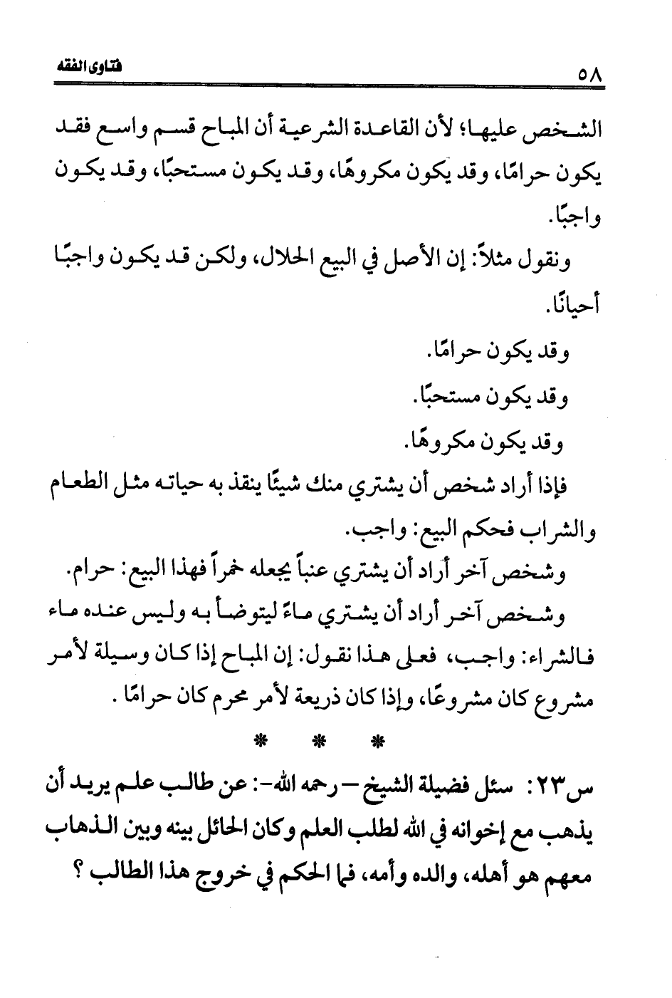الشخص عليها؛ لأن القاعدة الشرعية أن المباح قسم واسع فقد يكون حرامًا، وقد يكون مكروهًا، وقد يكون مستحبًا، وقد يكون واجبًا.