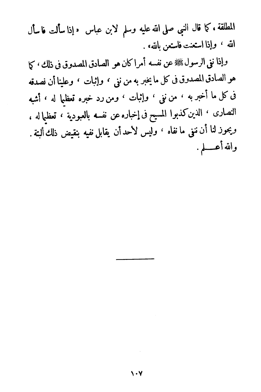 الْمُطْلَقَةَ كَمَا قَالَ النَّبِيُّ صَلَّى اللَّهُ عَلَيْهِ وَسَلَّمَ لِابْنِ عَبَّاسٍ {إذَا سَأَلْت فَاسْأَلْ اللَّهَ وَإِذَا اسْتَعَنْت فَاسْتَعِنْ بِاَللَّهِ} . وَإِذَا نَفَى الرَّسُولُ صَلَّى اللَّهُ عَلَيْهِ وَسَلَّمَ عَنْ نَفْسِهِ أَمْرًا كَانَ هُوَ الصَّادِقَ الْمَصْدُوقَ فِي ذَلِكَ كَمَا هُوَ الصَّادِقُ الْمَصْدُوقُ فِي كُلِّ مَا يُخْبِرُ بِهِ مِنْ نَفْيٍ وَإِثْبَاتٍ وَعَلَيْنَا أَنْ نُصَدِّقَهُ فِي كُلِّ مَا أَخْبَرَ بِهِ مِنْ نَفْيٍ وَإِثْبَاتٍ وَمَنْ رَدَّ خَبَرَهُ تَعْظِيمًا لَهُ أَشْبَهَ النَّصَارَى الَّذِينَ كَذَّبُوا الْمَسِيحَ فِي إخْبَارِهِ عَنْ نَفْسِهِ بِالْعُبُودِيَّةِ تَعْظِيمًا لَهُ وَيَجُوزُ لَنَا أَنْ نَنْفِيَ مَا نَفَاهُ وَلَيْسَ لِأَحَدِ أَنْ يُقَابِلَ نَفْيَهُ بِنَقِيضِ ذَلِكَ الْبَتَّةَ. وَاَللَّهُ أَعْلَمُ.