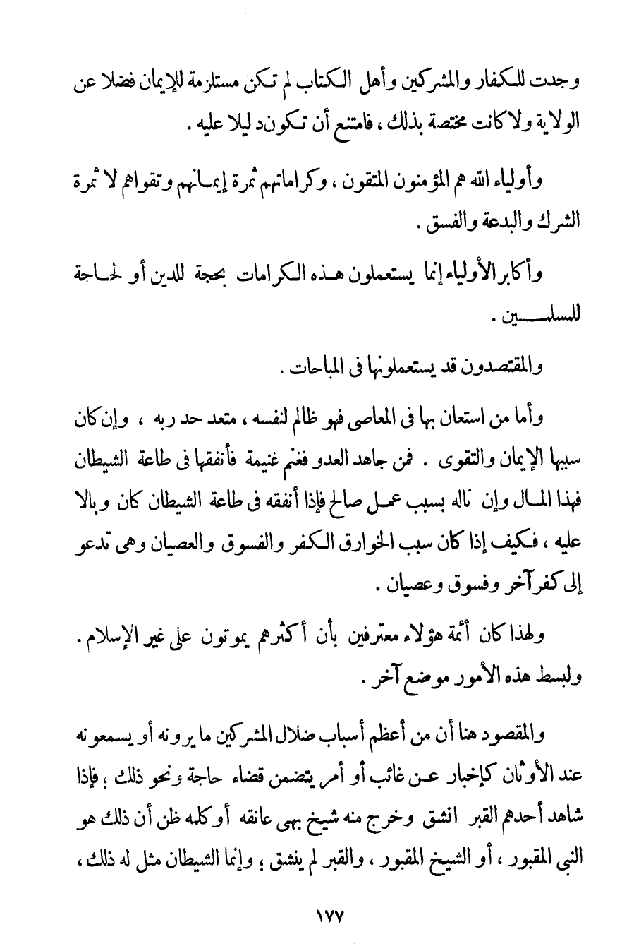 وُجِدَتْ لِلْكُفَّارِ وَالْمُشْرِكِينَ وَأَهْلِ الْكِتَابِ لَمْ تَكُنْ مُسْتَلْزِمَةً لِلْإِيمَانِ فَضْلًا عَنْ الْوِلَايَةِ وَلَا كَانَتْ مُخْتَصَّةً بِذَلِكَ فَامْتَنَعَ أَنْ تَكُونَ دَلِيلًا عَلَيْهِ. وَأَوْلِيَاءُ اللَّهِ هُمْ الْمُؤْمِنُونَ الْمُتَّقُونَ وَكَرَامَاتُهُمْ ثَمَرَةُ إيمَانِهِمْ وَتَقْوَاهُمْ لَا ثَمَرَةُ الشِّرْكِ وَالْبِدْعَةِ وَالْفِسْقِ. وَأَكَابِرُ الْأَوْلِيَاءِ إنَّمَا يَسْتَعْمِلُونَ هَذِهِ الْكَرَامَاتِ بِحُجَّةِ لِلدِّينِ أَوْ لِحَاجَةِ لِلْمُسْلِمِينَ. وَالْمُقْتَصِدُونَ قَدْ يَسْتَعْمِلُونَهَا فِي الْمُبَاحَاتِ. وَأَمَّا مَنْ اسْتَعَانَ بِهَا فِي الْمَعَاصِي فَهُوَ ظَالِمٌ لِنَفْسِهِ مُتَعَدٍّ حَدَّ رَبِّهِ وَإِنْ كَانَ سَبَبُهَا الْإِيمَانَ وَالتَّقْوَى. فَمَنْ جَاهَدَ الْعَدُوَّ فَغَنِمَ غَنِيمَةً فَأَنْفَقَهَا فِي طَاعَةِ الشَّيْطَانِ فَهَذَا الْمَالُ وَإِنْ نَالَهُ بِسَبَبِ عَمَلٍ صَالِحٍ فَإِذَا أَنْفَقَهُ فِي طَاعَةِ الشَّيْطَانِ كَانَ وَبَالًا عَلَيْهِ فَكَيْفَ إذَا كَانَ سَبَبُ الْخَوَارِقِ الْكُفْرَ وَالْفُسُوقَ وَالْعِصْيَانَ وَهِيَ تَدْعُو إلَى كُفْرٍ آخَرَ وَفُسُوقٍ وَعِصْيَانٍ. وَلِهَذَا كَانَ أَئِمَّةُ هَؤُلَاءِ مُعْتَرِفِينَ بِأَنَّ أَكْثَرَهُمْ يَمُوتُونَ عَلَى غَيْرِ الْإِسْلَامِ. وَلِبَسْطِ هَذِهِ الْأُمُورِ مَوْضِعٌ آخَرُ.