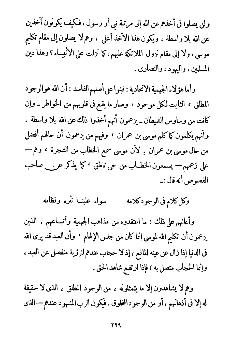 وَأَعَانَهُمْ عَلَى ذَلِكَ: مَا اعْتَقَدُوهُ مِنْ مَذَاهِبِ الْجَهْمِيَّة وَأَتْبَاعِهِمْ الَّذِينَ يَزْعُمُونَ أَنَّ تَكْلِيمَ اللَّهِ لِمُوسَى إنَّمَا كَانَ مِنْ جِنْسِ الْإِلْهَامِ وَأَنَّ الْعَبْدَ قَدْ يَرَى اللَّهَ فِي الدُّنْيَا إذَا زَالَ عَنْ عَيْنِهِ الْمَانِعِ إذْ لَا حِجَابَ عِنْدَهُمْ لِلرُّؤْيَةِ مُنْفَصِلٌ عَنْ الْعَبْدِ وَإِنَّمَا الْحِجَابُ مُتَّصِلٌ بِهِ؛ فَإِذَا ارْتَفَعَ شَاهِدُ الْحَقِّ. وَهُمْ لَا يُشَاهِدُونَ إلَّا مَا يَتَمَثَّلُونَهُ مِنْ الْوُجُودِ الْمُطْلَقِ الَّذِي لَا حَقِيقَةَ لَهُ إلَّا فِي أَذْهَانِهِمْ أَوْ مِنْ الْوُجُودِ الْمَخْلُوقِ. فَيَكُونُ الرَّبُّ الْمَشْهُودُ عِنْدَهُمْ - الَّذِي