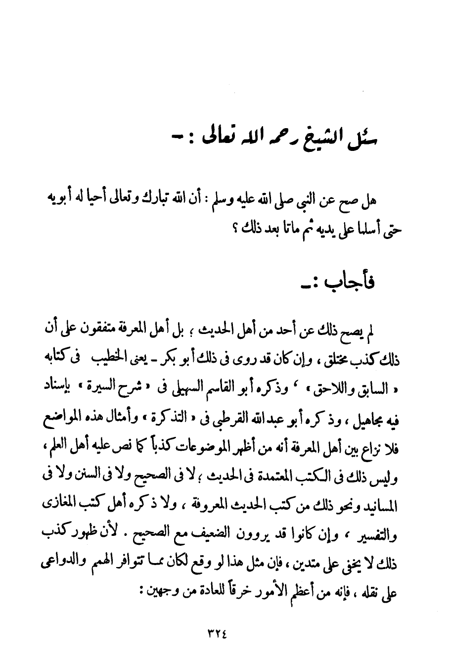 هَلْ صَحَّ عَنْ النَّبِيِّ صَلَّى اللَّهُ عَلَيْهِ وَسَلَّمَ أَنَّ اللَّهَ تَبَارَكَ وَتَعَالَى أَحْيَا لَهُ أَبَوَيْهِ حَتَّى أَسْلَمَا عَلَى يَدَيْهِ ثُمَّ مَاتَا بَعْدَ ذَلِكَ؟