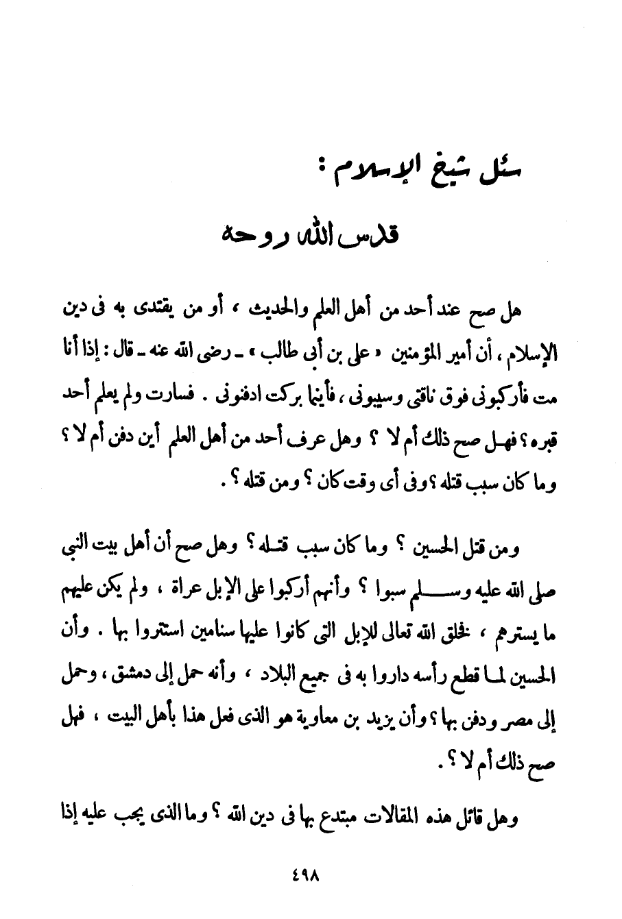 سُئِلَ شَيْخُ الْإِسْلَامِ - قَدَّسَ اللَّهُ رُوحَهُ -: