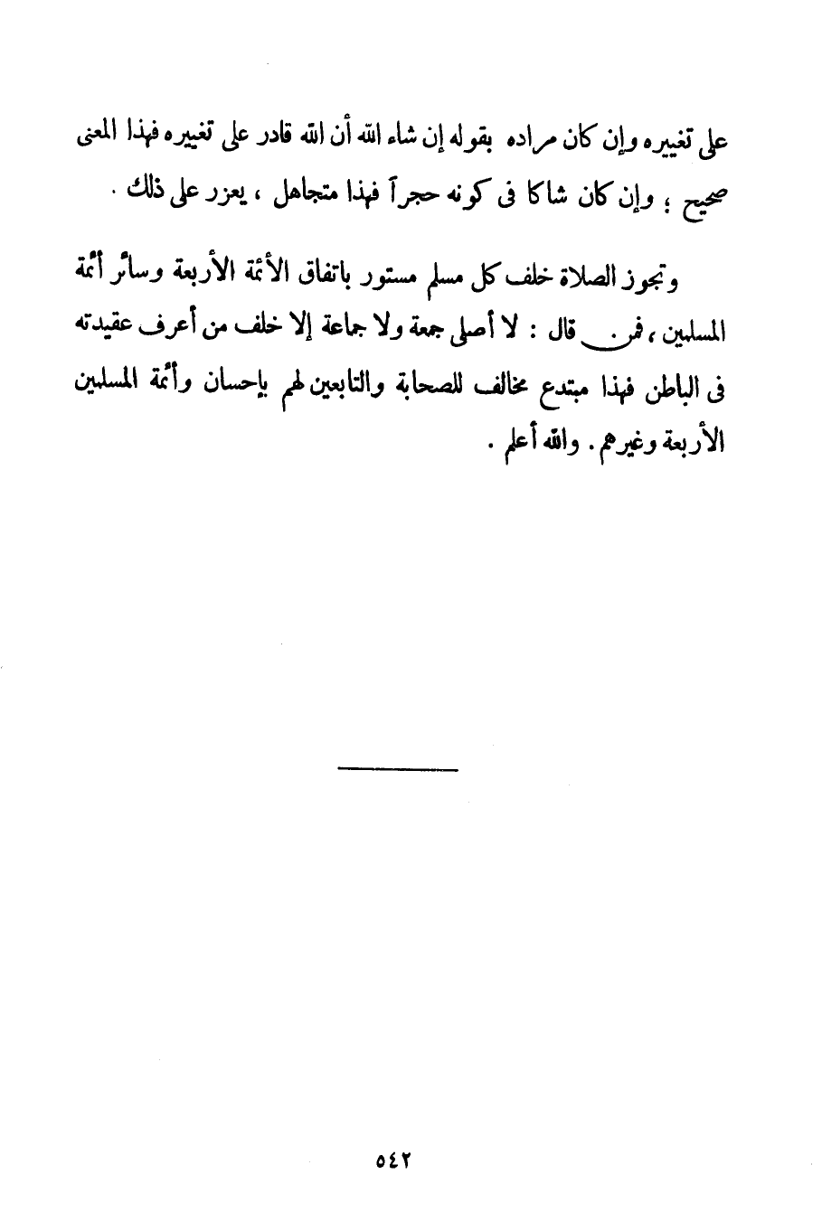 عَلَى تَغْيِيرِهِ وَإِنْ كَانَ مُرَادُهُ بِقَوْلِهِ إنْ شَاءَ اللَّهُ أَنَّ اللَّهَ قَادِرٌ عَلَى تَغْيِيرِهِ فَهَذَا الْمَعْنَى صَحِيحٌ؛ وَإِنْ كَانَ شَاكًّا فِي كَوْنِهِ حَجَرًا فَهَذَا مُتَجَاهِلٌ يُعَزَّرُ عَلَى ذَلِكَ. وَتَجُوزُ الصَّلَاةُ خَلْفَ كُلِّ مُسْلِمٍ مَسْتُورٍ بِاتِّفَاقِ الْأَئِمَّةِ الْأَرْبَعَةِ وَسَائِرِ أَئِمَّةِ الْمُسْلِمِينَ فَمَنْ قَالَ: لَا أُصَلِّي جُمْعَةً وَلَا جَمَاعَةً إلَّا خَلْفَ مَنْ أَعْرِفُ عَقِيدَتَهُ فِي الْبَاطِنِ فَهَذَا مُبْتَدِعٌ مُخَالِفٌ لِلصَّحَابَةِ وَالتَّابِعِينَ لَهُمْ بِإِحْسَانِ وَأَئِمَّةِ الْمُسْلِمِينَ الْأَرْبَعَةِ وَغَيْرِهِمْ. وَاَللَّهُ أَعْلَمُ.