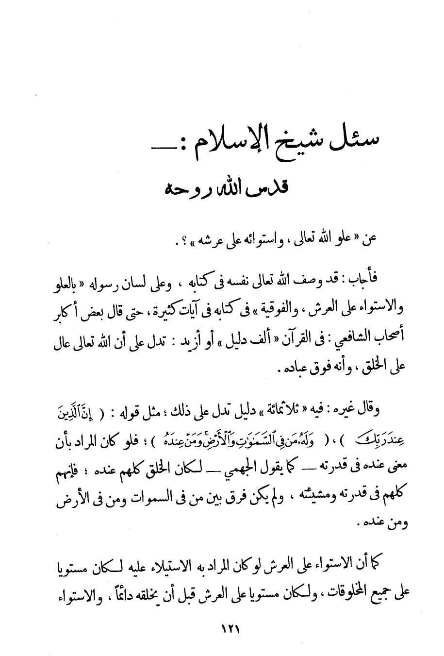 عَنْ " عُلُوِّ اللَّهِ تَعَالَى وَاسْتِوَائِهِ عَلَى عَرْشِهِ "؟