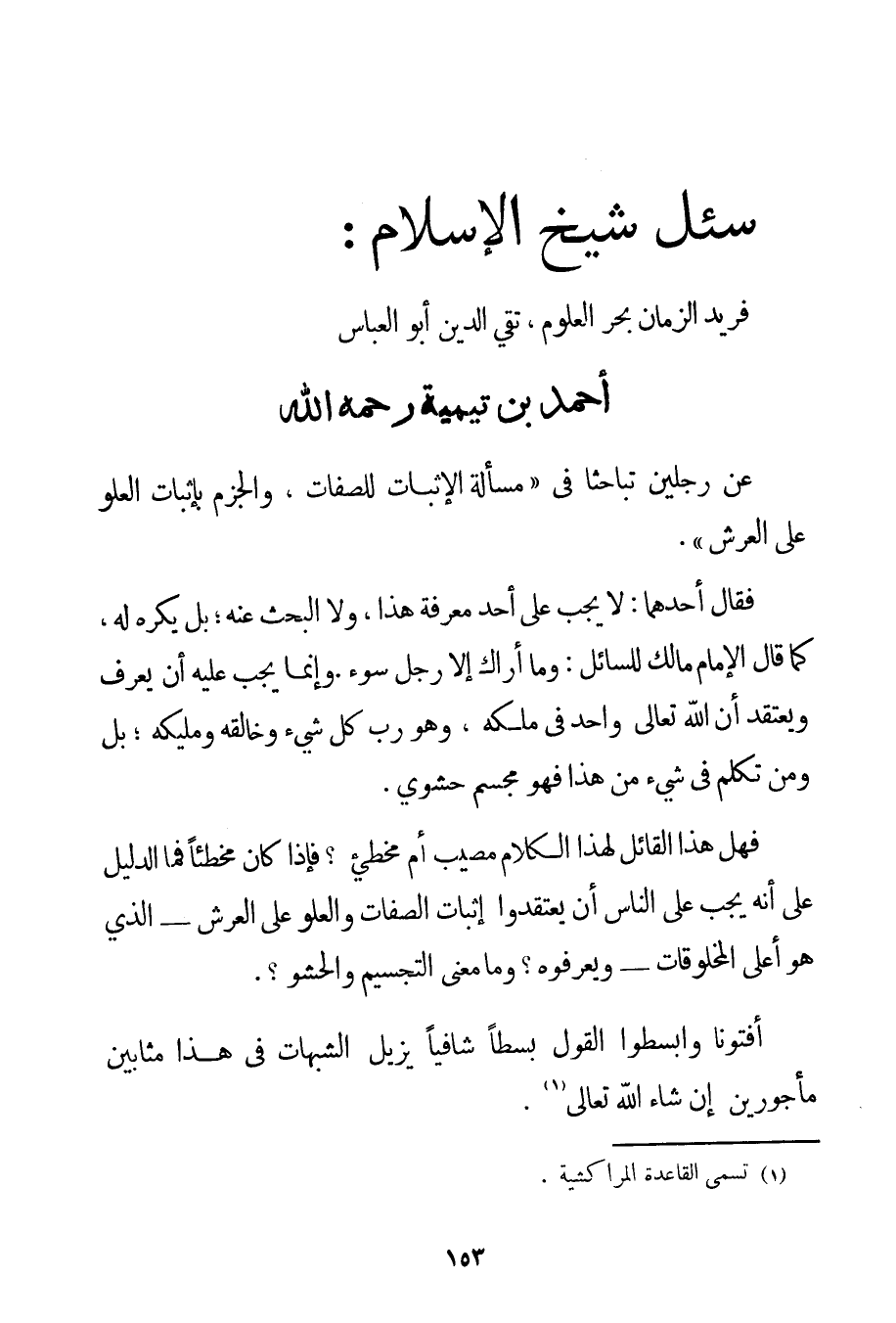 سُئِلَ شَيْخُ الْإِسْلَامِ فَرِيدُ الزَّمَانِ بَحْرُ الْعُلُومِ تَقِيُّ الدِّينِ أَبُو الْعَبَّاسِ أَحْمَد بْنُ تَيْمِيَّة -رَحِمَهُ اللَّهُ -:
