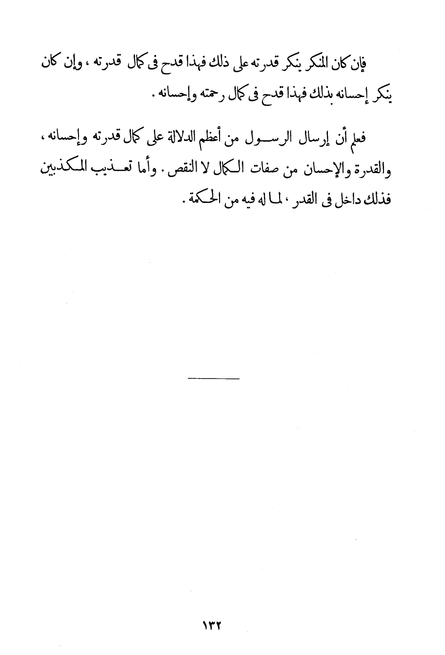 فَإِنْ كَانَ الْمُنْكِرُ يُنْكِرُ قُدْرَتَهُ عَلَى ذَلِكَ فَهَذَا قَدْحٌ فِي كَمَالِ قُدْرَتِهِ وَإِنْ كَانَ يُنْكِرُ إحْسَانَهُ بِذَلِكَ فَهَذَا قَدْحٌ فِي كَمَالِ رَحْمَتِهِ وَإِحْسَانِهِ. فَعُلِمَ أَنَّ إرْسَالَ الرَّسُولِ مِنْ أَعْظَمِ الدَّلَالَةِ عَلَى كَمَالِ قُدْرَتِهِ وَإِحْسَانِهِ وَالْقُدْرَةُ وَالْإِحْسَانُ مِنْ صِفَاتِ الْكَمَالِ لَا النَّقْصِ. وَأَمَّا تَعْذِيبُ الْمُكَذِّبِينَ فَذَلِكَ دَاخِلٌ فِي الْقَدَرِ لِمَا لَهُ فِيهِ مِنْ الْحِكْمَةِ.
