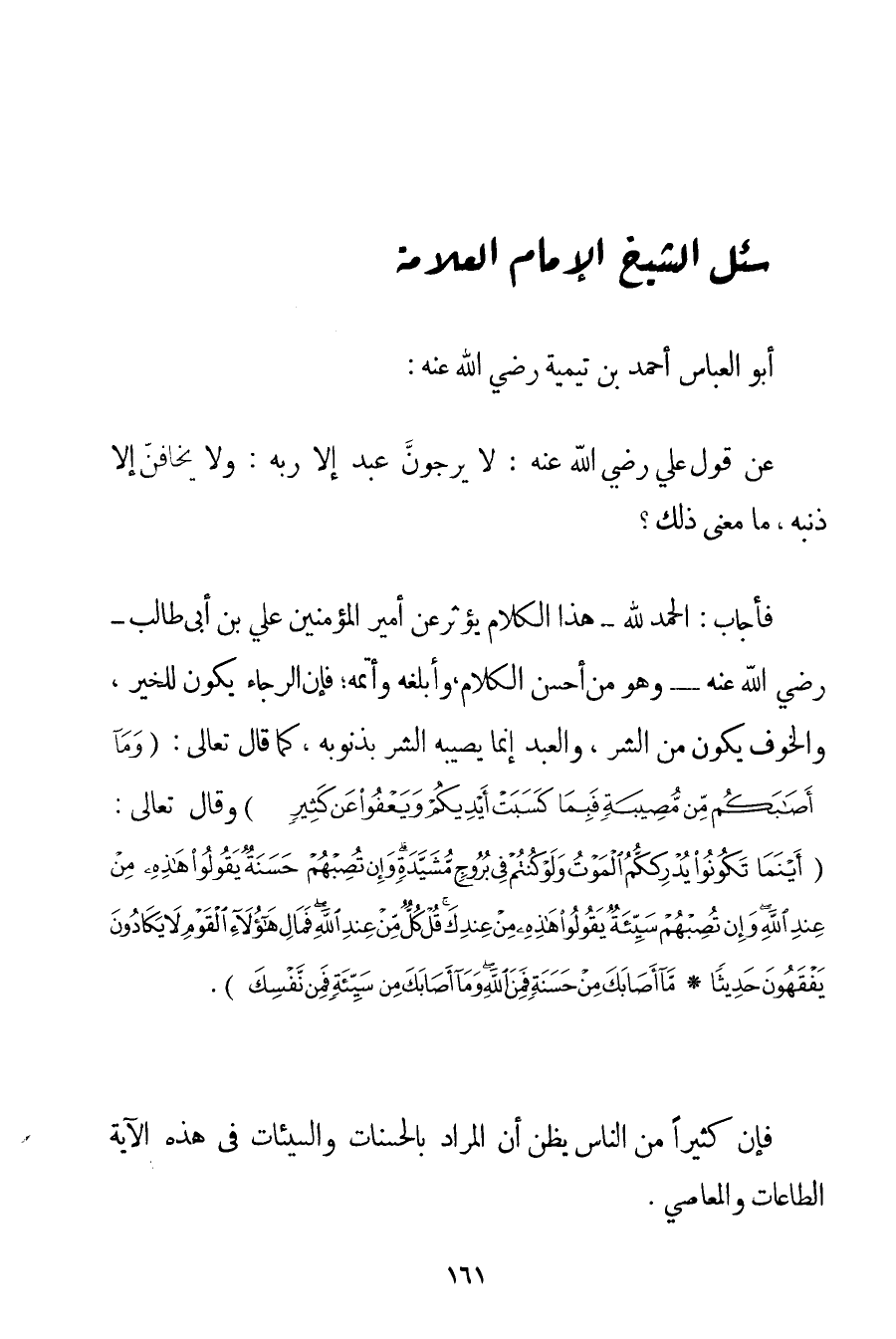 سُئِلَ الشَّيْخُ الْإِمَامُ الْعَلَّامَةُ أَبُو الْعَبَّاسِ أَحْمَد ابْنُ تَيْمِيَّة - رَضِيَ اللَّهُ عَنْهُ -: