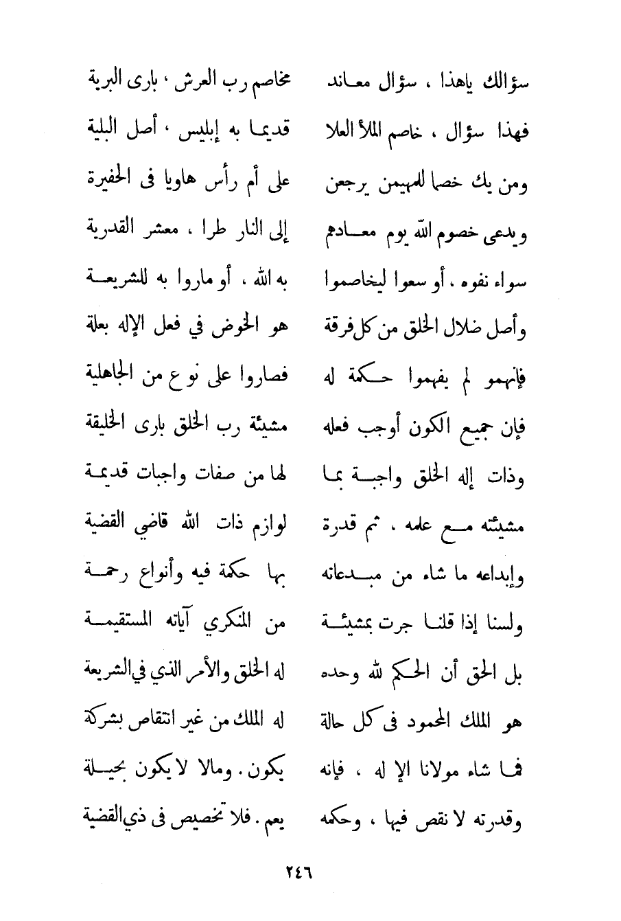 سُؤَالُكَ يَا هَذَا سُؤَالُ مُعَانِدٍ ... مُخَاصِمِ رَبِّ الْعَرْشِ بَارِي الْبَرِيَّةِ