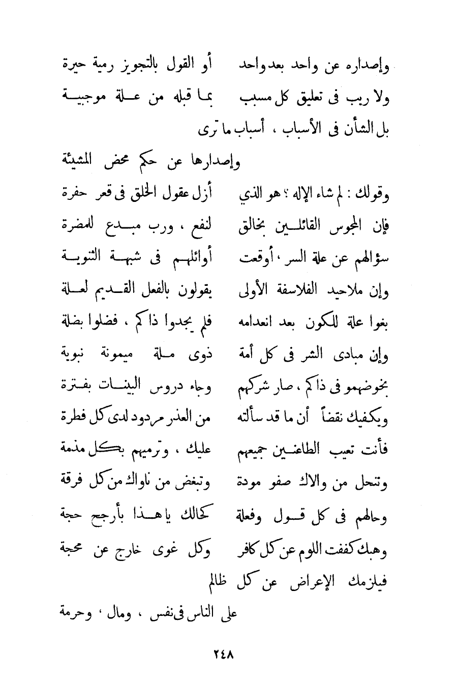 فَإِنَّ الْمَجُوسَ الْقَائِلِينَ بِخَالِقِ ... لِنَفْعِ وَرَبٍّ مُبْدِعٍ لِلْمَضَرَّةِ