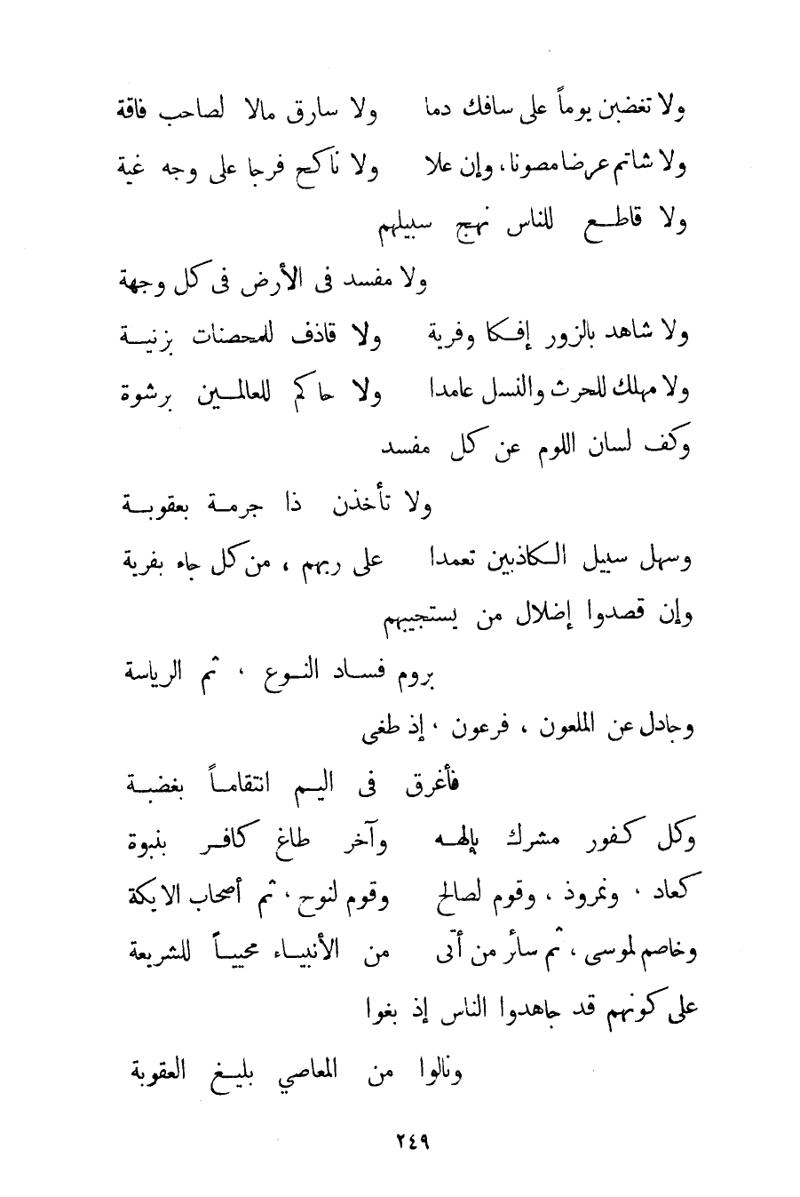 وَلَا تَغْضَبَنْ يَوْمًا عَلَى سَافِكٍ دَمًا ... وَلَا سَارِقٍ مَالًا لِصَاحِبِ فَاقَةِ