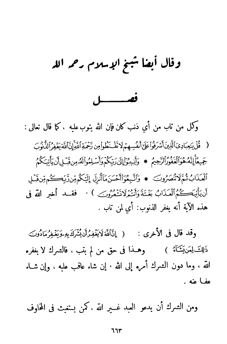 وَقَالَ أَيْضًا شَيْخُ الْإِسْلَامِ - رَحِمَهُ اللَّهُ -: